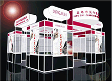 其特點(diǎn)是型材和木質(zhì)結(jié)構(gòu)相結(jié)合。設(shè)計(jì)旨在以展具的形式美和材質(zhì)美來襯托產(chǎn)品。其效果新穎美觀。 Booth set up with aluminium alloy frame material and wood;Both advantages of the two kinds of materials are jointly taken to meet the edmands of the clients. |
